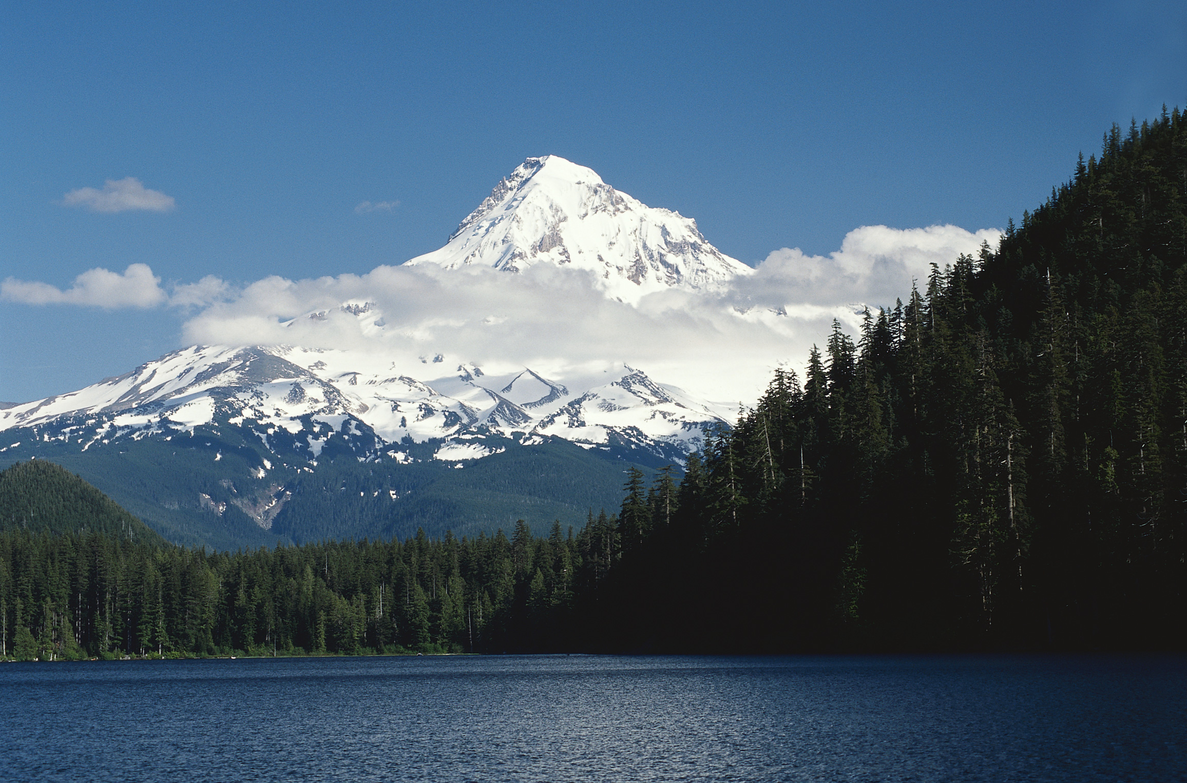 Озеро на фоне горной снежной вершины