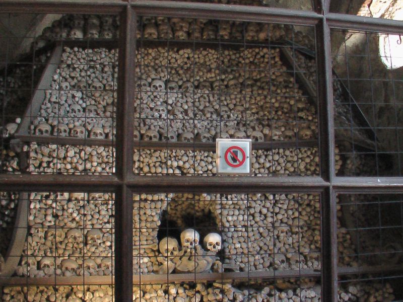 В "Костнице" (Чехия, г.Кутна Гора) украшения сотворены из останков 40 000 человек.
