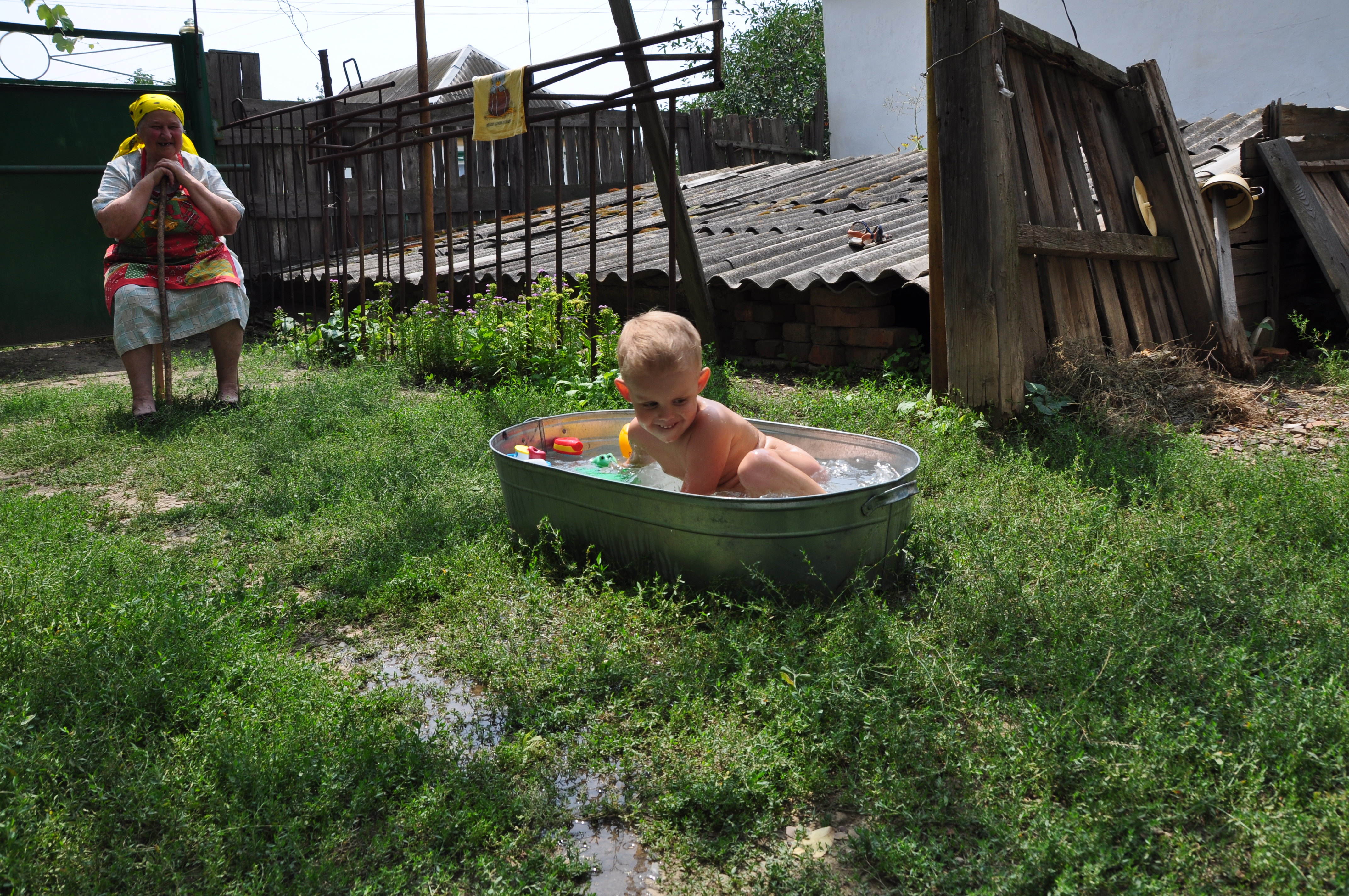 У бабушки во дворе потекла еще одна речка. Дима постарался.